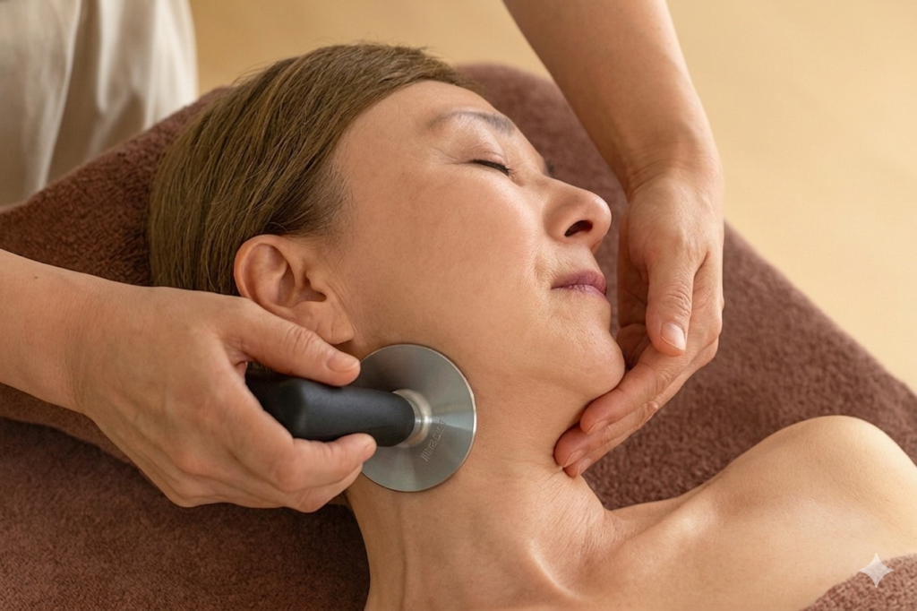 アキラ鍼灸院では、目黒で首元から自然に整えたい方に向けて、頸部インディバリフトをご提供しています。