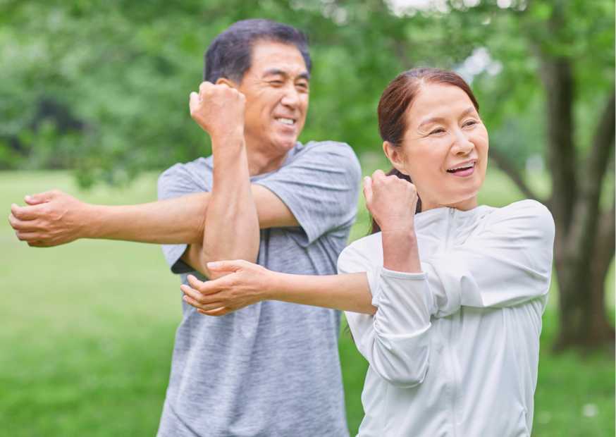 - 血行が良くなり、冷え・肩こり解消 腕を振ったりストレッチをしたりすると、体の血の巡りが良くなります。これにより、肩や首の凝りがほぐれ、冷えも改善されます。